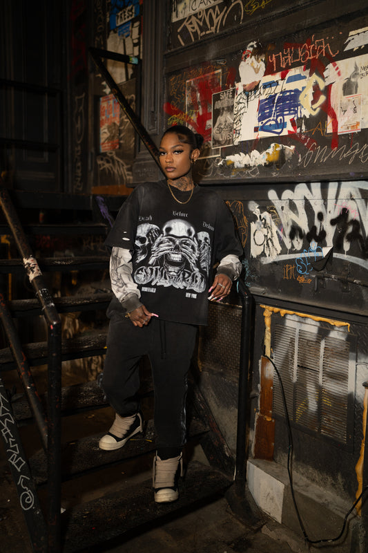 Our Brand is titled EvilWrld simply because we feel that many can relate to it in some way. Some people tend to look over the good & positive and feed off the negative narratives. Nothing but Evil comes from broadcasting negativity. Hear No Evil, See No Evil, Speak No Evil and Evil shall not last